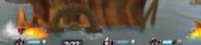 A Lurker Shark makes an appearance in the stage Sandover Village. If a fighter falls in the water the fish will pop out and start swimming back and forward trying to eat everyone that is on his path. After some time it will submerge in the water. It attacks by biting the fighters, but his attacks are not deadly. Another Lurker Shark (or possibly the same) appears in the Time Station Stage as a background character, chasing a Pipo Monkey in an attempt to eat him.