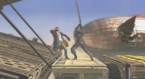 Come Out and Play: Raiden is seen crouching down with his back turned to the screen. He then stands up, faces the screen, and pulls out his Sword.