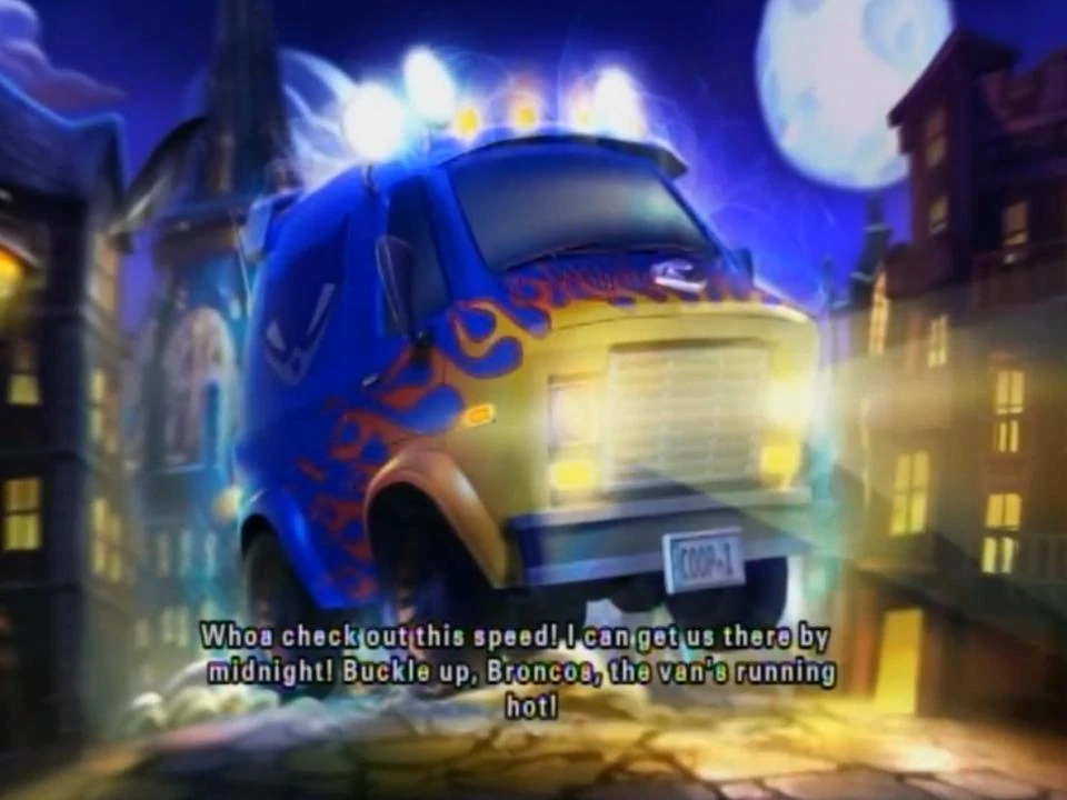 Murray: Whoa! Check out this speed! I can get us there by midnight! Buckle up, Broncos, the van's running hot!