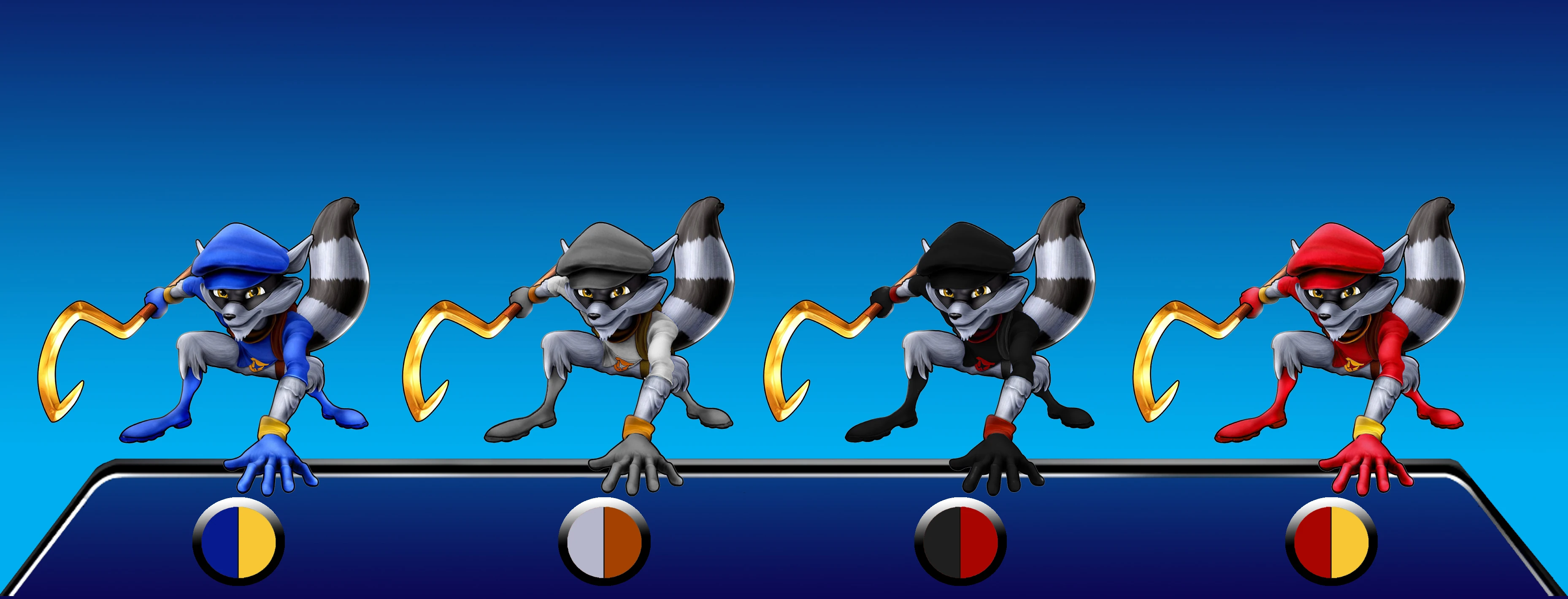 - Sly's fourth color for his default costume is based on the unlockable "Ultimate Sly" in Thieves in Time after collecting 15 "Secret Sly Masks".